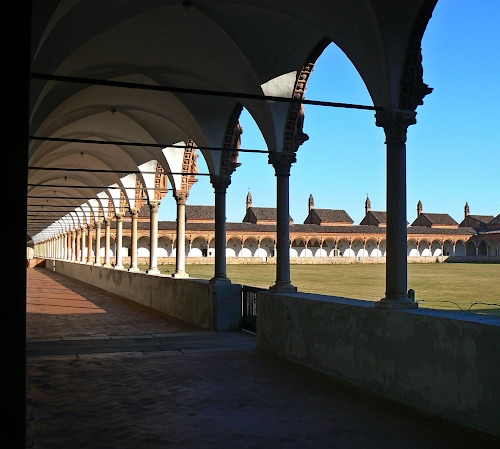 Foto dell'autore rofragio candidata al contest fotografico attraverso su Dizy. Data inserimento: mercoledì 16 aprile 2025. Titolo: Chiostro visto attraverso le colonne