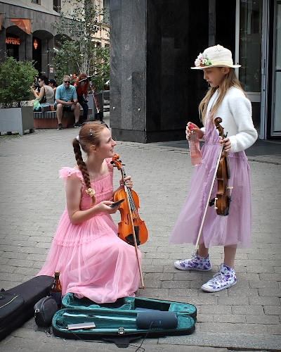 Foto dell'autore marelys candidata al contest fotografico coppia su Dizy. Data inserimento: lunedì 9 giugno 2025. Titolo: Coppia di giovani violiniste a Riga