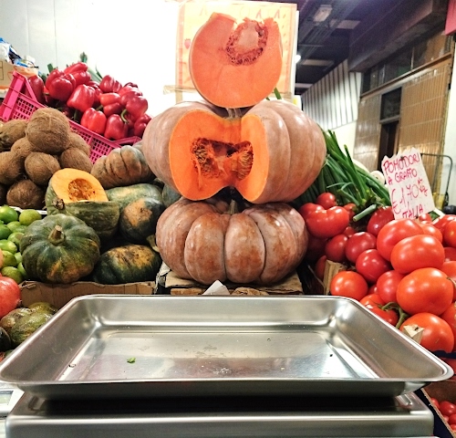 Foto dell'autore marivodo candidata al contest fotografico zucche su Dizy. Data inserimento: giovedì 29 gennaio 2026. Titolo: Piramide di zucche al mercato