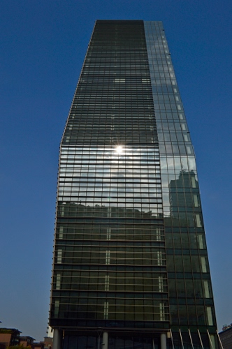 Altri tag (senza riscontro): acciaio, piani, sera, vetrate, blu, geometrico, prospettiva, torre, alto.