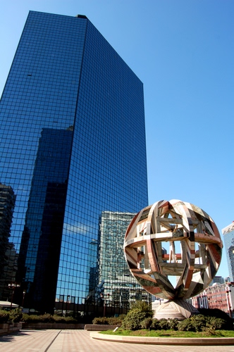 Altri tag (senza riscontro): edificio, ombra, nuvole, vetri, mappamondo, blu, azzurro, palla, grattacieli, finestre, riflessi, piazza, piante.