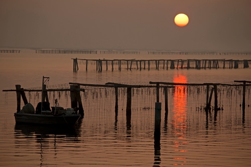 La sensazione è quella di una bell'alba quando il silenzio e la quiete padroneggiano prima che cominci la vita di tutti i giorni. Una barca isolata ormeggiata mi porta a chiedermi se le altre barche siano già partite quando era ancora buio o se il luogo sia ormai quasi abbandonato. Il riflesso del sole e quelli della barca e dei pali non sono particolarmente dominanti, forse avrebbe reso di più una lunga esposizione. Lo scrivo per ultimo ma è quello che mi ha colpito per primo: l'orizzonte sembra fortemente pendere. Dico sembra perché con la foschia sullo sfondo non si capisce se ci sia della terra o se si veda l'orizzonte del mare. Ad ogni modo la percezione è che la foto sia storta, quindi l'avrei raddrizzata perché, secondo me, in questi casi la percezione dell'osservatore prevale sul resto. |