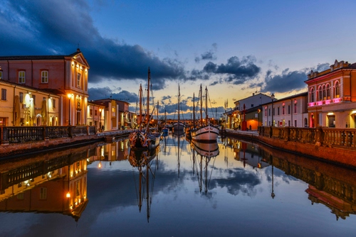 Altri tag (senza riscontro): edifici, cesenatico, paesaggio, luci, chiesa, tramonto.
