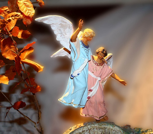 Molto valida come idea, come se ci fossero dei raggi che illuminano gli angeli, bello anche il rametto. Purtroppo però non hai curato la sfocatura, andava fatta su tutto lo sfondo, non solo dietro gli angeli, e con un po' di cura. |