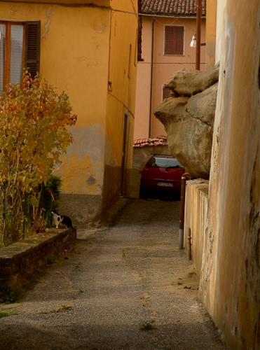 Foto dell'autore emilia F candidata al contest fotografico vicoli su Dizy. Data inserimento: sabato 10 gennaio 2015. Titolo: Con auto rossa e gatto bianconero