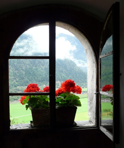 104° Bard, finestra crociata | 106° tra pizzi e gerani rossi |
