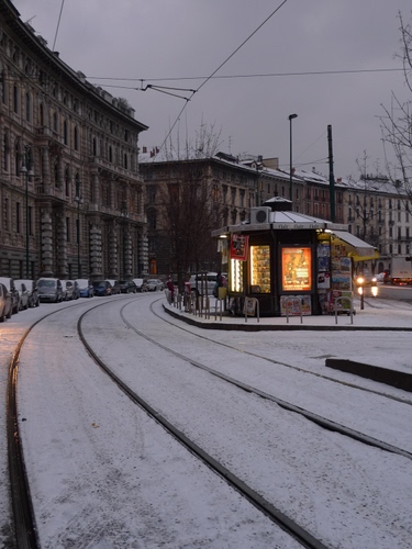 550° Piazza Cordusio dopo la nevicata | 608° È ghiacciata la fontana del castello |