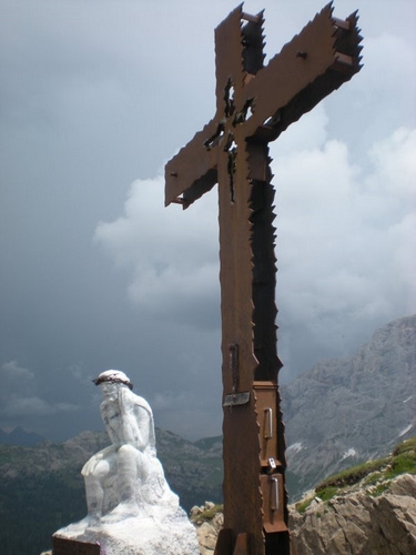 Grazie si trova a Passo Rolle sulla cima del Castellazzo ( posto tra l'altro molto suggestivo)comunque basta cercare " Il Cristo Pensante" se hai occasione merita la sfaticata per raggiungerlo! |