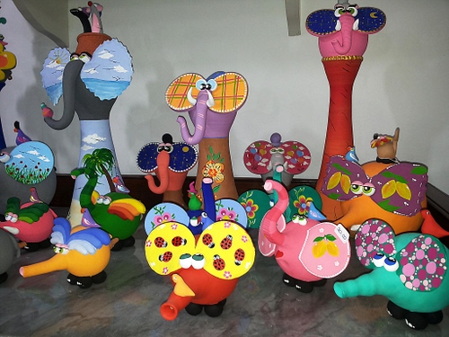 Tag: elefanti, colori, orecchie, pupazzi, multicolore, giocattoli, proboscidi, tavolo, giallo, rosso, elefante, occhi.