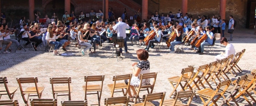 Prove dell'orchestra Giovanile di Bentivoglio nel cortile del Castello.
