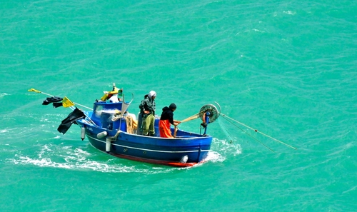 A Cetara, paese di pescatori della costiera amalfitana, nonostante la giornata fredda e ventosa i pescatori escono in mare con la loro barca. Ho scelto questa foto, realizzata con zoom 70-30 e nikon D90, per il colore verde smeraldo del mare che fa da cornice all'azione di pesca...