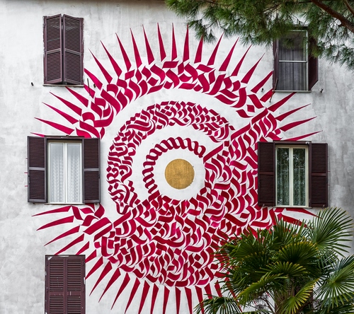 Non so il significato, ma il murales si chiama sole rosso |