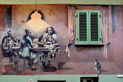 Anch'io ho postato questo murale, assieme ad altri di Dozza, ma con una diversa inquadratura che comprende l'intera facciata della casa. Evidentemente la tua composizione è migliore. Brava! ![]() |