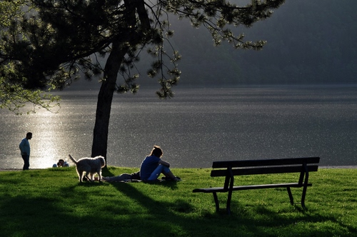 Splendida atmosfera, con il sole a pettinare cane e signora e la panchina a fare da tranquilla spettatrice ![]() |
