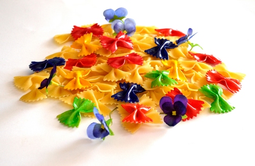 Ottima, il podio meritato. Mi ha colpito in fase di foto, anche senza vedere il titolo - l'idea di colorare la pasta farfalle per renderla colorata come le farfalle è geniale. Ottimo pure mettere i fiori sulle farfalle, mentre nella realtà è il contrario. Per me merita il primo posto, ex-aequo con la terza arrivata. |