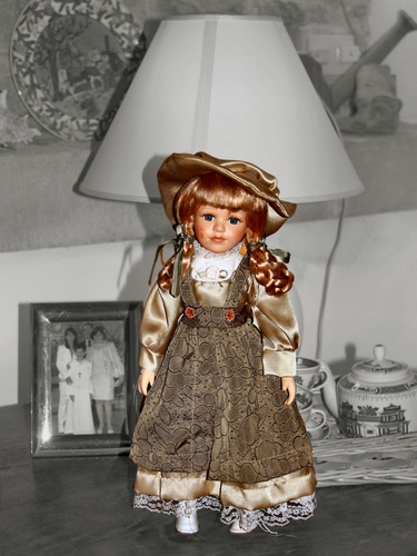 311° Vecchia bambola in ceramica | 388° Capelli neri, vestito bianco |