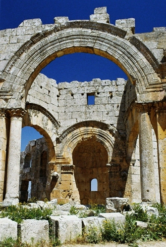 Grazie per l'apprezzamento alla foto, si tratta delle rovine della basilica di Qala'at Samaan in Siria, non lontano da Aleppo ora purtroppo in mano all'Isis. |