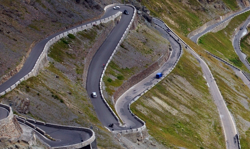 Per la precisione i tornanti sono 48 ! Quella dello Stelvio è una salita mitica per i ciclisti, e tutti coltivano il sogno di percorrerla almeno una volta nella vita. Io il mio sogno l'ho coronato qualche anno fa e i tornanti li ho contati ad uno ad uno, non finivano mai ![]() |