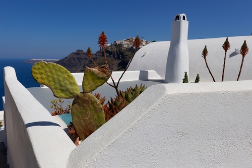 252° Santorini | 380° un comignolo giallo e blu a Santorini |