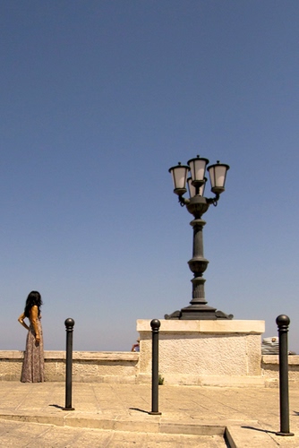 Troppo cielo, troppo pavimento e la signora è troppo vestita |