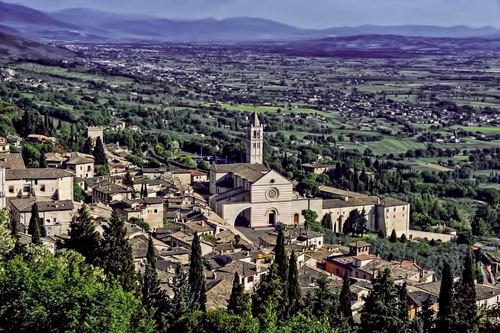 Questa è la chiesa di Santa Chiara ad Assisi, vista dalla Rocca Maggiore. |