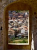 Carina e simpatico l'antico ferro da stiro a fermare la tenda. |