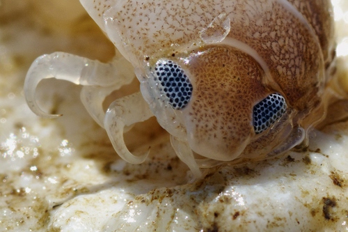 He he... non è un terrestre, è un parassita dei pesci che non credo riescano mai a liberarsi di questo essere una vola "agganciati". il nome dovrebbe essere:anilocra ecc ecc. Io non ero accorto nemmeno che avesse gli occhi. |