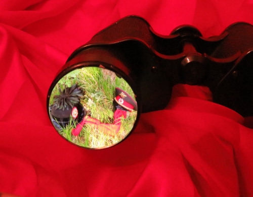 La foto l'ho realizzata inserendo uno specchietto in un monocolo (per rendere l'idea di un osservatore del passato) che riflette una foto che ho realizzato con i miei cappelli sulle colline di Firenze.