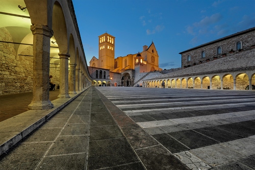 Molto bella con i giochi geometrici di colore del pavimento e quelli di luce fra i portici. |