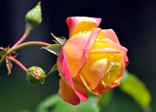 Una rosa dai colori favolosi... e la gocciolina sulla punta del bocciolo è adorabile. |
