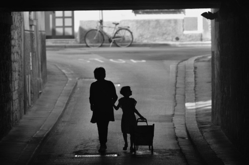 l'uscita dal sottopassaggio, verso la luce e con gli sguardi curiosi della bambina. verso il futuro.