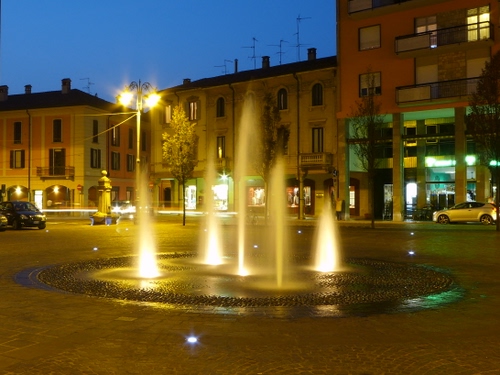 Fontana che sgorga dal selciato in piazza del Popolo a Casalpusterlengo (ebbene sì, anche se qui su Dizy non serve l'ubicabilità, mi piace lo stesso indicare il luogo di scatto, ove posso, soprattutto quando il luogo mi è così caro come questo!)