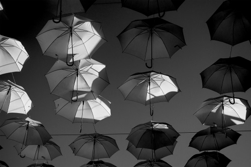 infatti nel surrealismo succede.... comunque sono due foto differenti e scattate in due momenti differenti a distanza di mesi in un centro commerciale che cambia il colore degli ombrelli ogni tanto per scenografia e questi erano bianchi. |