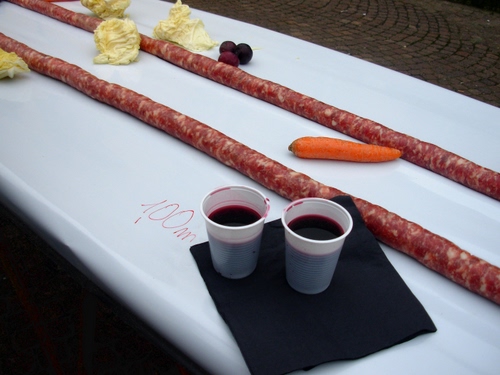 Foto scattata durante la manifestazione November Porc, a Zibello (PR) edizione 2012; durante la fiera è stato realizzato un "strolghino" da guinness della lunghezza di 338 metri. Lo strolghino è un insaccato che viene prodotto nella bassa emiliana, con le carni della rifilatura del culatello.