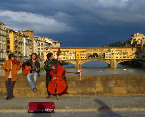 Tag: ponte, firenze, musica, musicisti, suonatori, fiume, tre, strumenti.
