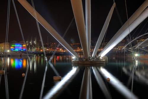 Altri tag (senza riscontro): struttura, pali, pilastri, geometrie, notturna, colonne, ponte, raggi, cielo, colonna, città, genova, diagonali.