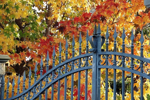le foglie colorate sullo sfondo valorizzano molto il dettaglio del cancello ![]() |