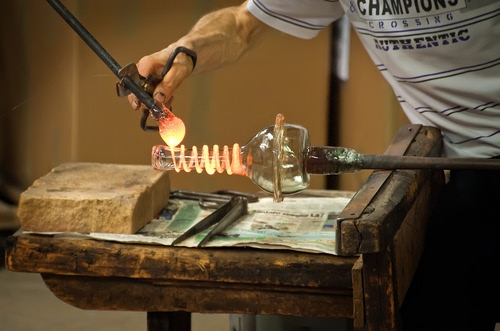 Complimenti: bella la composizione con le diagonali del busto dell'artigiano e dello strumento e il fascino della forma di vetro dell'oggetto.