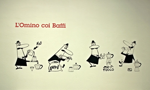 @Mavi Sono stata ad una mostra sulla storia della Bialetti e l'omino con i baffi era posizionato su un muro non ricordo se fossero degli adesivi o un disegno, comunque non era un poster, se vuoi ti invio l'originale. ![]() |