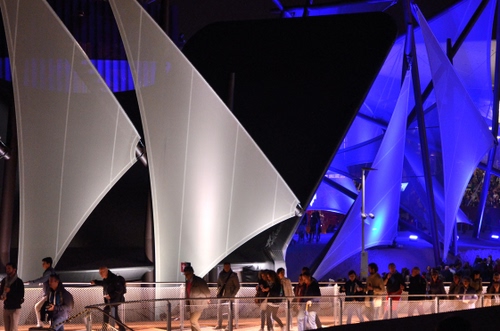 Altri tag (senza riscontro): passerella, struttura, visitatore, ringhiera, ponte, fila, uscita, scultura, milano, ingresso, coda, azzurro, padiglione, spettacolo, vela, interno, spettatori, bicolore.