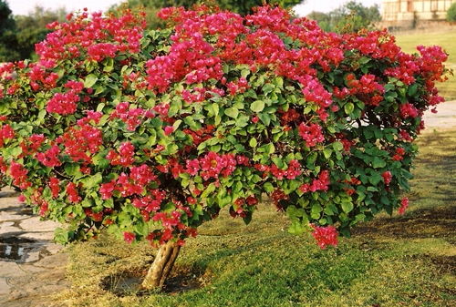 Sei sicuro che sia un ibisco? A me sembra una Bouganvillea allevata ad alberello. |