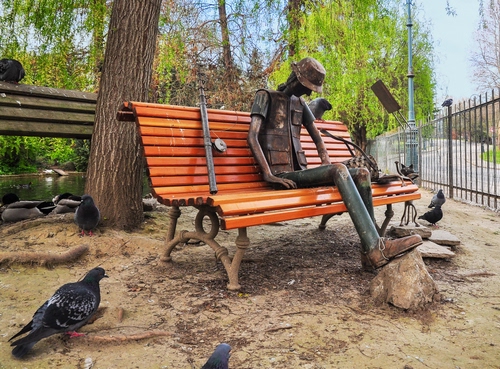tutte originali le tue panchine ; questa mi piace tanto - la trovo un'ottima composizione e il "poveretto" ha solo i piccioni come compagnia ... |