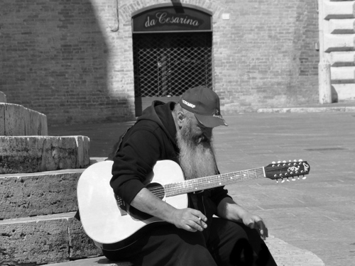 Altri tag (senza riscontro): gradini, vecchio, grigio, vagabondo, nero, suonatore, cappellino, negozio, bianco.