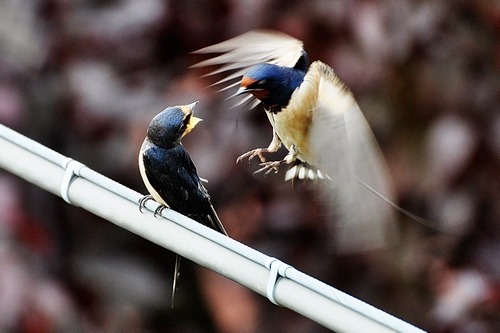 Strordinaria capacità creativa enfatizzata dal movimento delle ali che danno l'idea della delicatezza, appunto di "un battito d'ali". Qui l'attimo è davvero stato colto per raccontare una storia di tenerezza.in relazione alla tecnica fotografica l'autore ha fatto buon uso dei tempi e del diaframma sfocando lo sfondo al punto giusto e lasciando il movimento delle ali, senza sfocare la testa dell'uccellino in volo.la messa a fuoco delle zampette sul tubo lasciano pensare comunque ad una ottima capacità fotografica. |