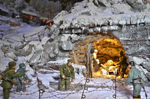 Effettivamente è un presepe molto particolare, in cui tutti i personaggi sono soldati, compresi San Giuseppe e la Madonna. La scena è molto più ampia ed è un vero e proprio teatro di guerra. Per rimanere in tema ho dovuto limitare l'inquadratura alla capanna, ma questo "presepe" merita sicuramente di essere visto con maggiore attenzione in tutta la sua interezza. Grazie per l'apprezzamento e la preferenza ![]() |