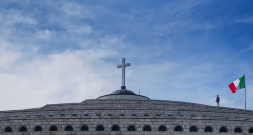 trovata al voto e pensavo di vederla molto più in alto, è una bella inquadratura dove la presenza umana e la bandiera allegeriscono il rigore della morte ![]() |