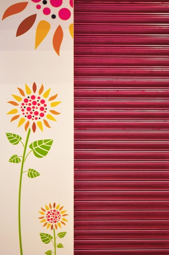 Bello anche questo accostamento tra serranda liscia e muro decorato, ottimo il taglio ![]() |