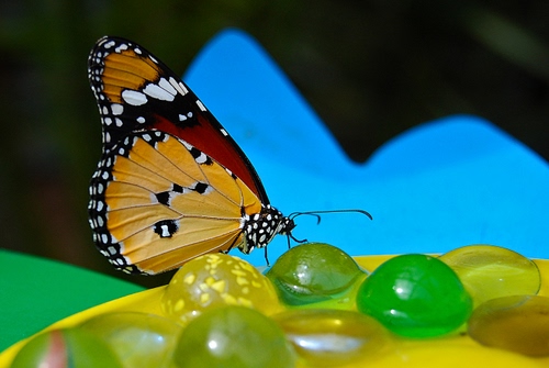 Perfetta armonia di colori e forme e l'attenzione di chi osserva piacevolmente convogliata verso la farfalla che si staglia nitidamente in un contesto delicatamente sfuocato. Splendida!!! |
