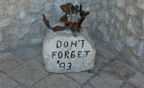 Si trova a Mostar vicino al ponte simbolo, posato per non dimenticare quello che successe nel 93, con l'uccisione di migliaia di persone, la semidistruzione della città e l'abbattimento del ponte stesso con l'unico risultato di avere una città divisa in due. |