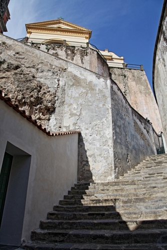 Collegiata di Santa Maria a Mare: si trova sul monte Torina e prende il suo nome dalla Statua che nel 1204 venne trovata sulla spiaggia di Maiori. La chiesa che originariamente era dedicata a S. Michele Arcangelo è di origine antichissima e fu oggetto di vari interventi di restauro e di ampliamento, in particolare negli anni 1529, 1748 e 1836. Nel 1505 riceve il titolo di Insigne Collegiata da parte del Papa Giulio II. Soppressa la prepositura da Benedetto XIII nel 1727, viene successivamente ripristinata con la bolla Romanus Pontifex di Papa Benedetto XIV del 2 aprile 1742, esecutoriata dalla Regia Corte il 18 maggio successivo. Il regio assenso prestato da Ferdinando IV di Borbone il 6 febbraio 1789 agli Statuti dell'Insigne Collegiata, attribuiva all'Università dei Cittadini il diritto di patronato e nomina delle principali dignità capitolari (Prevosto e Primicerio). Il soffitto a cassettoni, commissionato dalle famiglie Mezzacapo, Lanario e De Ponte, che copre la volta della navata centrale è stato eseguito nel 1529 dal pittore napoletano Alessandro de Fulco ed è una delle poche parti antiche che sono rimaste invariate. La sagrestia monumentale è stata edificata nel 1866 sul luogo ove un tempo sorgeva il palazzo prepositurale donato dalla Città al Prevosto pro tempore nel 1507. Nella cripta, il cui altare conserva le spoglie di San Clemente, martire Romano (giunte a Maiori nel 1785 grazie all'interessamento di monsignor Nicola Molinari, vescovo di Ravello e Scala) è allestito il museo d'arte sacra "Don Clemente Confalone". Il monumentale organo plurifonico della chiesa fu costruito da Zeno Fedeli di Foligno e collaudato dal maestro D. Lorenzo Perosi.